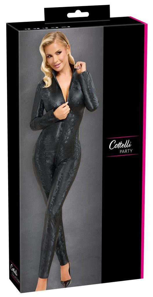 Hadí kůže od hlavy až k patě! Přiléhavý overal s dlouhými rukávy od značky Cottelli PARTY má šedý hadí vzor a padne na tělo jako druhá kůže. Je také měkký a pružný, takže poskytuje maximální pohodlí. Trojcestný zip je praktický i erotický zároveň – začíná u malého stojáčku u krku, vede přes rozkrok a končí až u horní části hýždí. Díky tomu jej lze rozepínat a zapínat na různých místech.