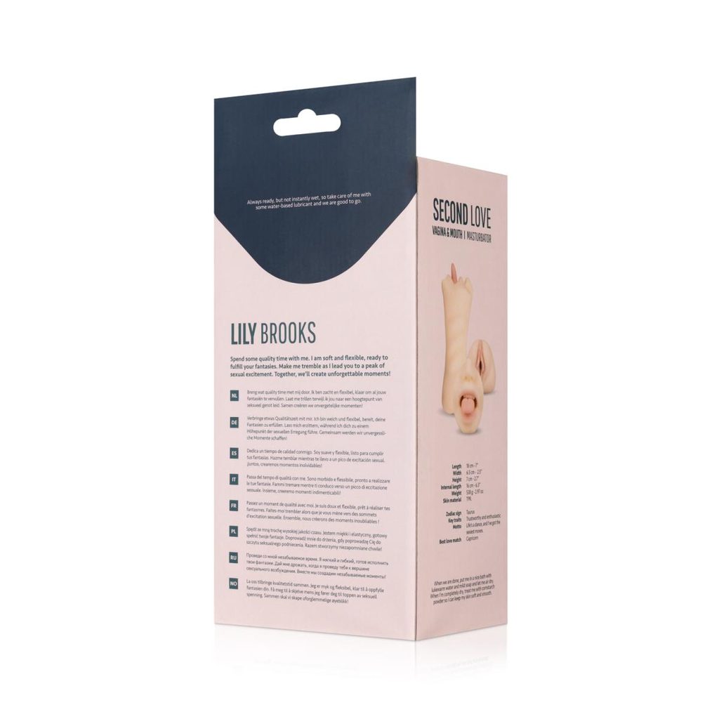 Masturbátor Lily Brooks od značky Friend with Benefits je realisticky vypadající masturbátor s vagínou a ústy. Ústa mají realisticky vypadající jazyk a zuby pro autentický zážitek. Materiál TPR je měkký, ale pevný, rukáv je na vnitřní straně opatřen žebrováním pro intenzivní stimulaci. Pro pohodlný pocit při používání použijte lubrikant na vodní bázi.