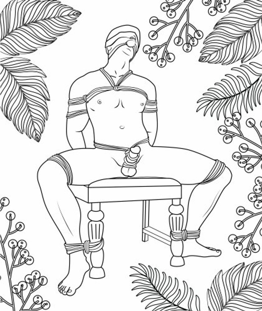 Antistresové omalovánky obsahují detailní ilustrace různých BDSM témat, jako například: svazování, latex, roubíky a mnoho dalšího.