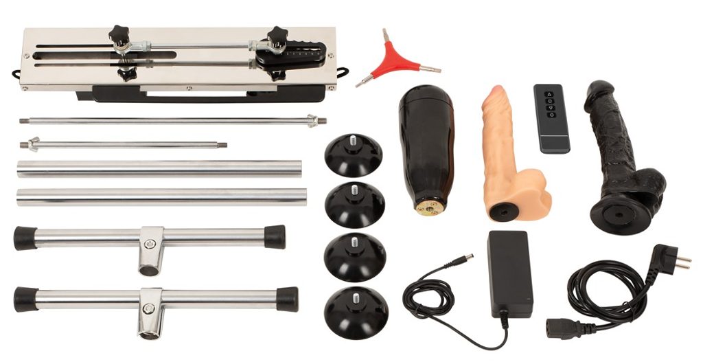 Sexuální stroj 49 cm x 48 cm x 37 cm. Kov, ABS, PVC, TPE.